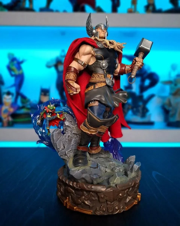 Iron Studios is proud to present the deluxe Thor Unleashed 1:10 Art Scale statue from Marvel Comics. Standing about 11 inches tall, Thor Unleashed features the God of Thunder with his mighty hammer, Mjolnir, alongside the tiny Throg, the variant version of Thor in the form of a frog. The statue has been sculpted in polystone and features a hand-painted finish.