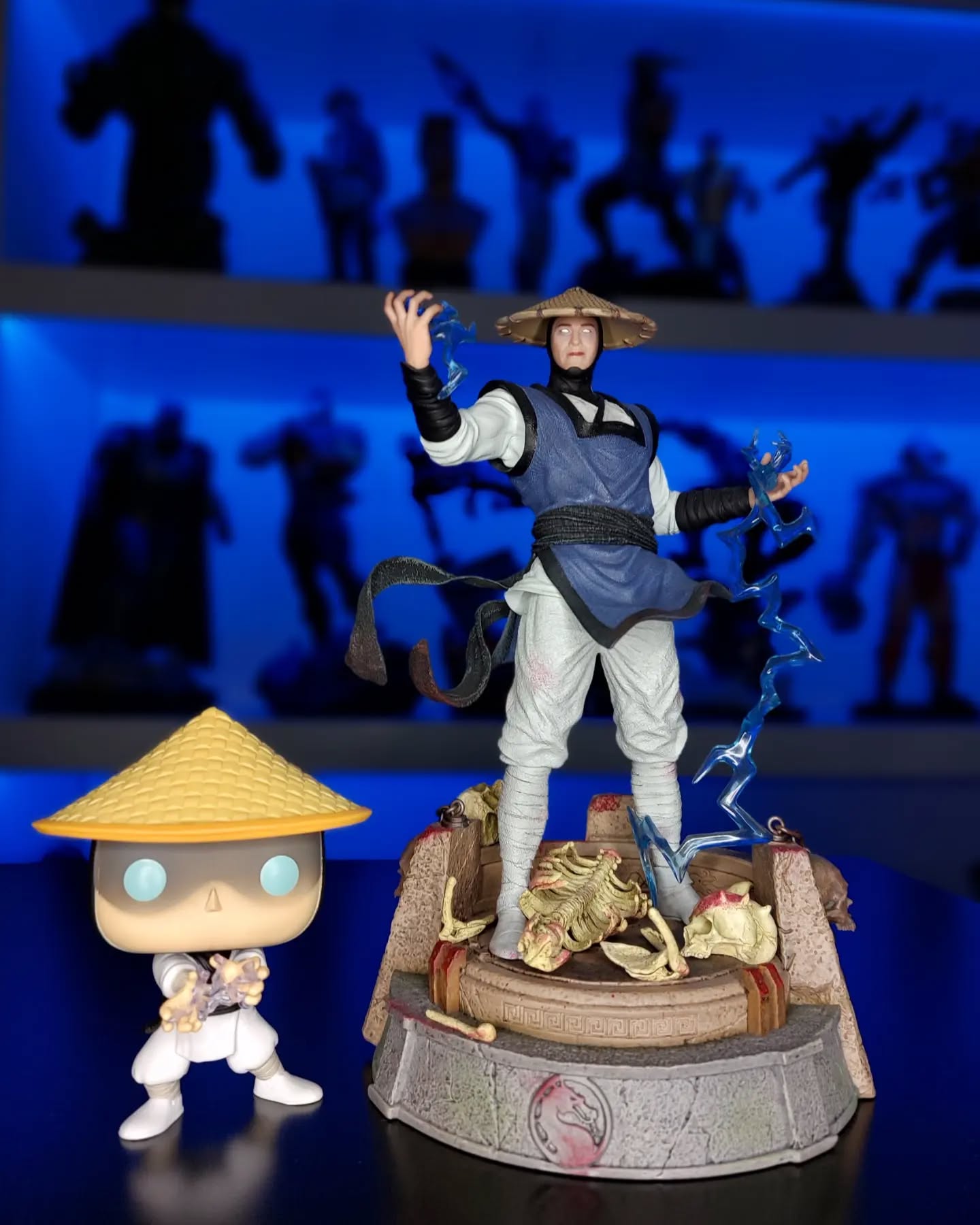 Inspired by the look presented in the Mortal Kombat II game on a rustic altar base from the kingdom of Outworld, Raiden is presented with bones and chains at his feet and skulls carved in small columns around him. The dragon symbol of the ancient tournament is displayed on the front. Raiden adds to the already revealed fearsome villains Goro and Shao Kahn in the Mortal Kombat collection from Iron Studios, which promises to bring in the future other legendary figures from the cult series of fighting games created by Ed Boon and John Tobias.