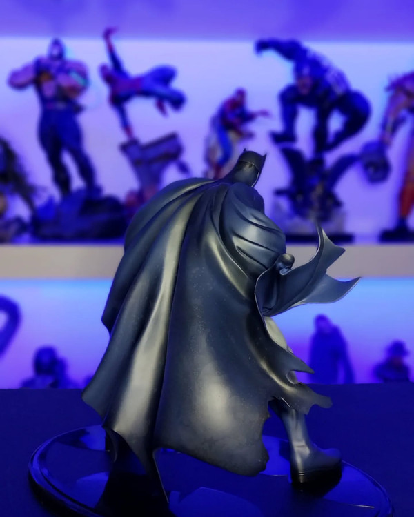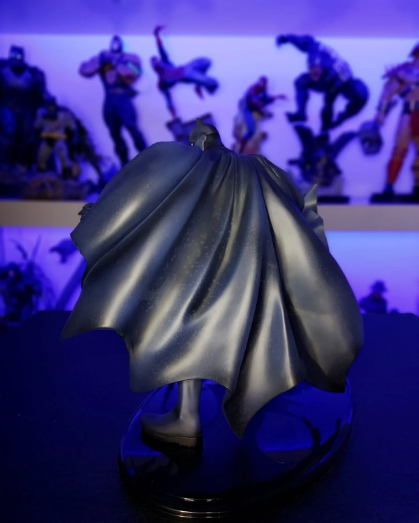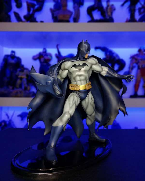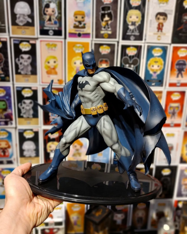 Batman appears in his blue costume from the story standing at just about 30cm tall! Batman’s muscular silhouette is poised and ready to fight against crime. His presence fully encapsulates the essence of Gotham City’s Dark Knight! Batman stands firmly upon a metal base printed with a bat logo thanks to the magnets embedded in the figure’s feet.This statue comes easy to assemble and would look good in any collection.