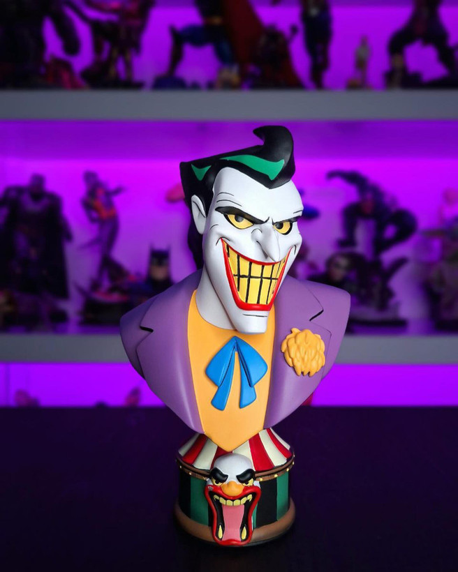 From Batman: The Animated Series, The Joker becomes part of the Legends in 3D line of busts. Standing 10 inches tall, The Joker is limited to only 1,000 pieces and comes packaged in a full-color box with a hand-numbered certificate of authenticity.