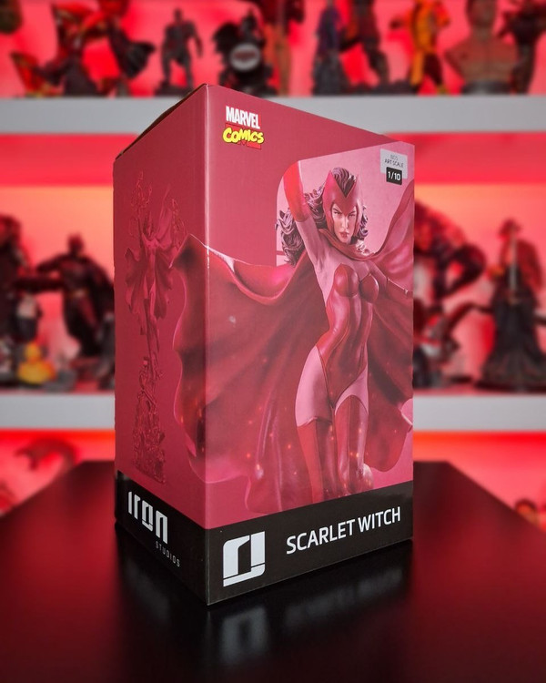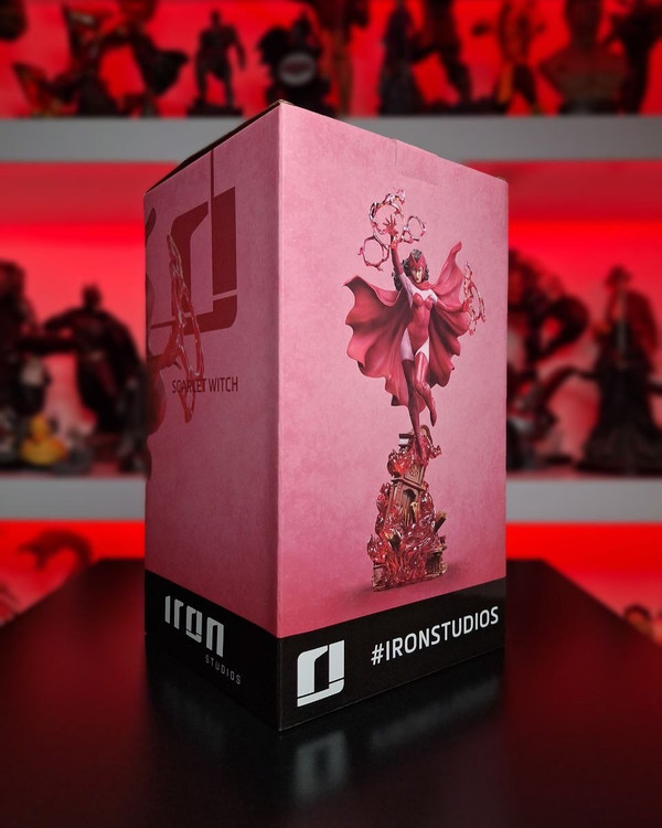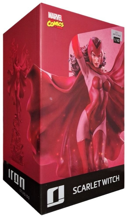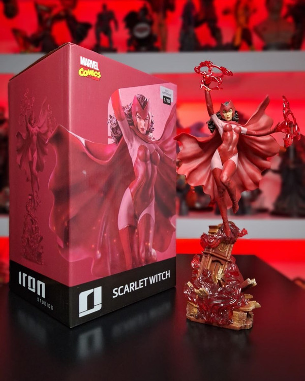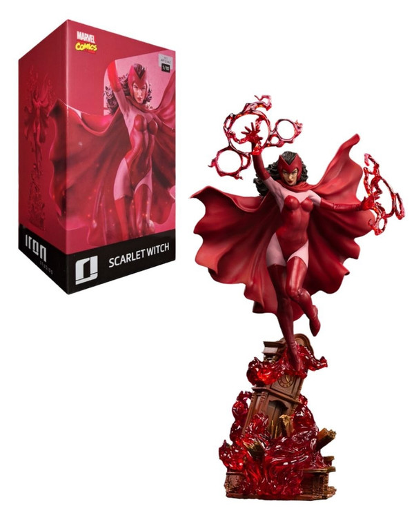 She can control Chaos Magic, which allows her to manipulate probability and even distort and change reality itself. On an old grandfather clock base with the rubble from the heroes' mansion, she floats with her power. Appearing as if she were bending time and space, Wanda Maximoff, also known as Scarlet Witch, manipulates bundles of supernatural red energy with her hands, and her imposing presence intimidates any opponent. As if she came straight out of the pages of the Marvel comics, she joins forces with her twin brother, the sprinter Quicksilver, previously revealed by Iron Studios.