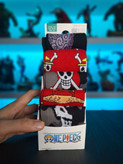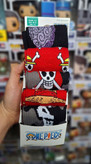 The straw hat pirates are heading off on adventures and are calling you to join with this beautiful pack of socks. Coming in red, black, and grey colours, the socks in this pack have images of the show logo, the straw hat itself, and the crew's Jolly Roger, the perfect pieces for the fans of this anime juggernaut.