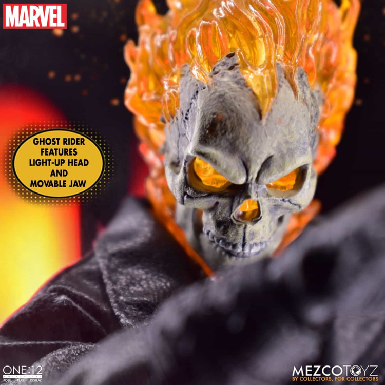 Mezco is excited to announce Ghost Rider and Hell Cycle to their One:12 Collective line! This set features a light-up head, removeable flames, and even a sound feature. Ghost Rider measures about 8 inches and the Hell Cycle measures 9 inches, pefect for displaying in your collection!