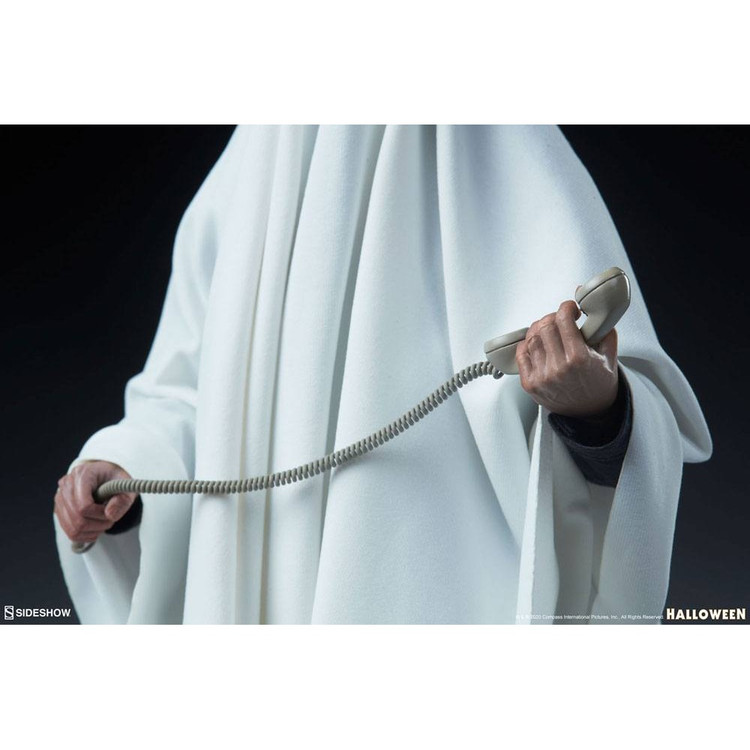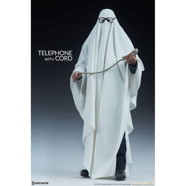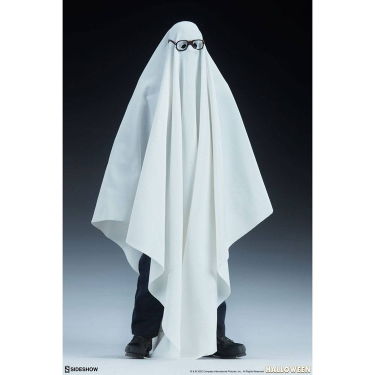 Inspired by his iconic appearance in the original Halloween (1978) movie, the Michael Myers Deluxe Sixth Scale Figure wears a costume of tailored blue fabric coveralls and a black fabric undershirt as well as sculpted boots. The figure includes two distinct portraits, one featuring a detailed depiction of his infamous mask, complete with sculpted hair and weathering details, and one portrait with non-removable glasses and a fabric sheet ghost costume.