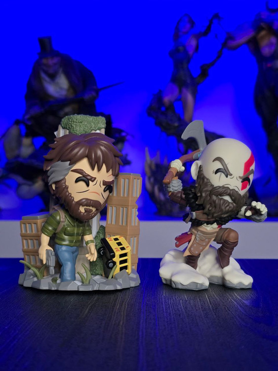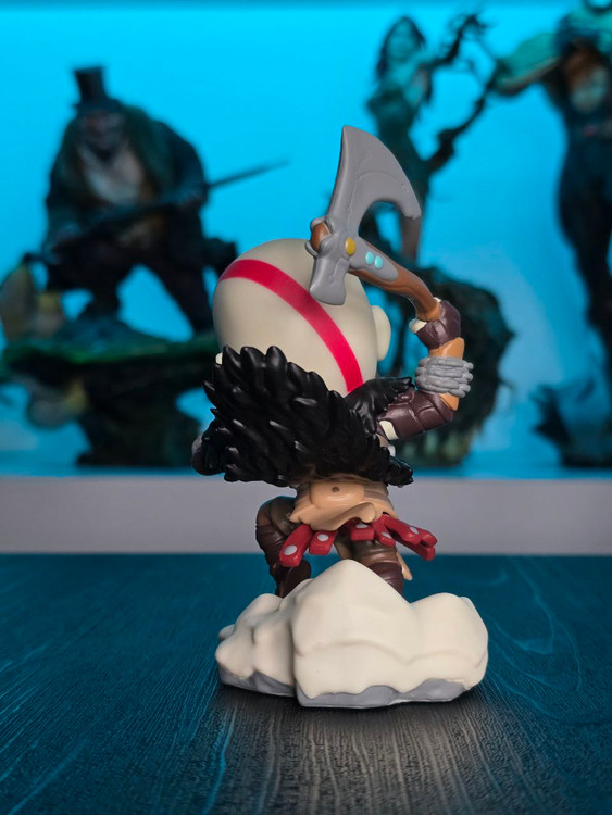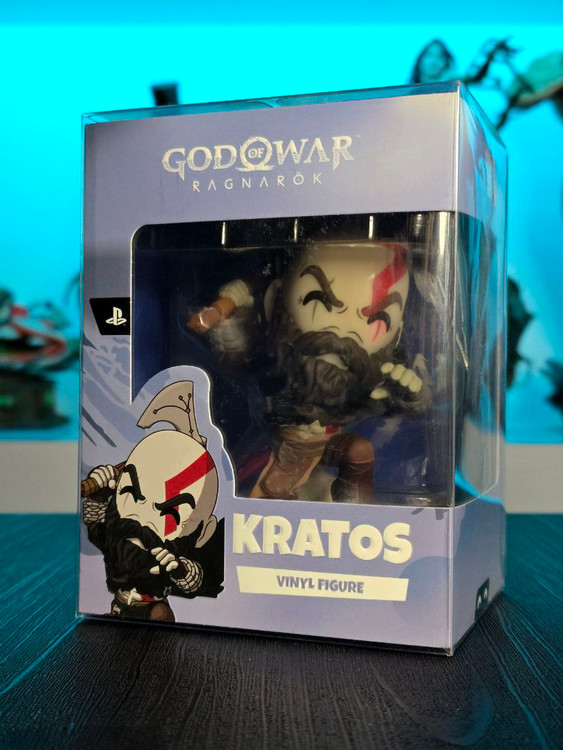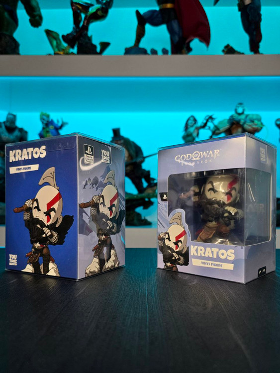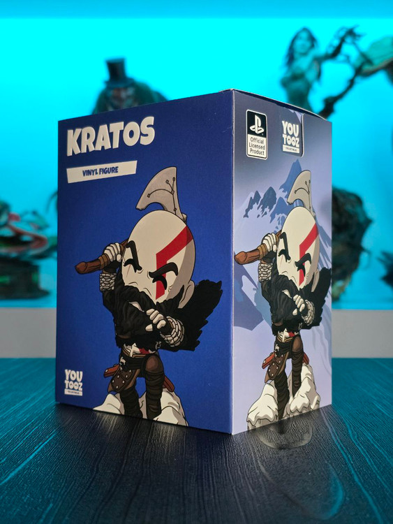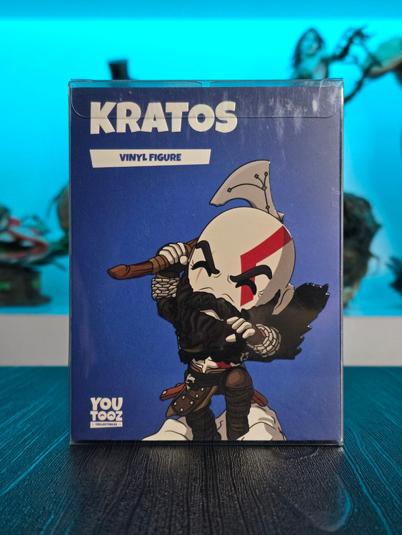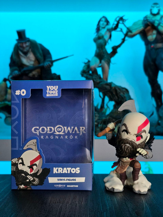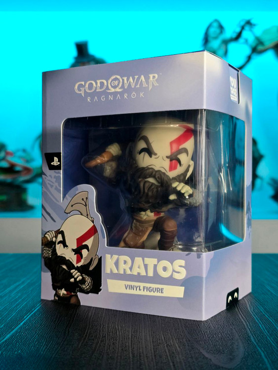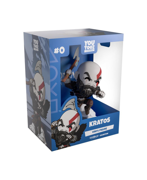 Kratos has some unfinished business with Youtooz… wait a minute! It’s for his debut, right?! Leaping forward through thick white snow at 5 inches tall and posed ready to unleash a devastating downward cleave from the axe raised behind his head, a thick black beard covers his face as a scar crosses one eye and a thick red tattoo runs over his head and across the other. With a black cloak flowing behind him from the force of his lunge, he wears simple brown leather armour around his arms and legs with chains wrapped around his forearms and belts around his waist.