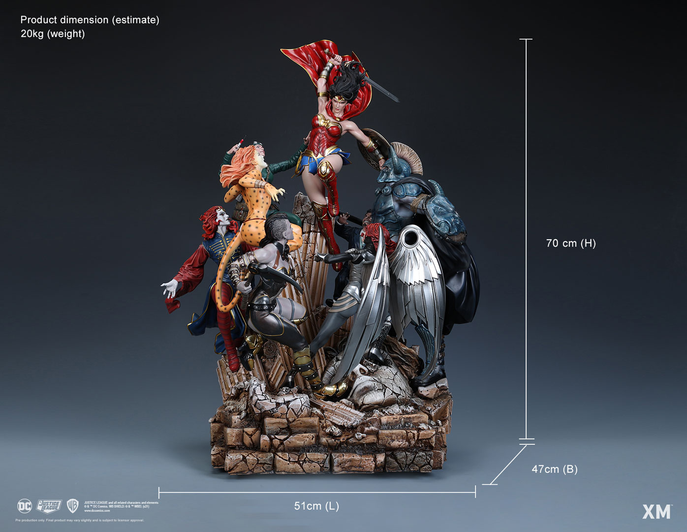 XM Studios is excited to present our next 1:6 DC Premium Collectibles diorama, Wonder Woman! Beautiful as Aphrodite, wise as Athena, swifter than Hermes, and stronger than Hercules, Princess Diana of Themyscira fights for peace in Man's World. A continuation from Batman Sanity, XM worked with David Finch to bring to you Wonder Woman Courage. This beloved character is immortalized in amazingly detailed 1:4 scale cold-cast porcelain. Each painstakingly handcrafted statue is individually hand-painted with the high quality finish. The 1:6 Diorama comes in two versions: Full Colour and Marble.